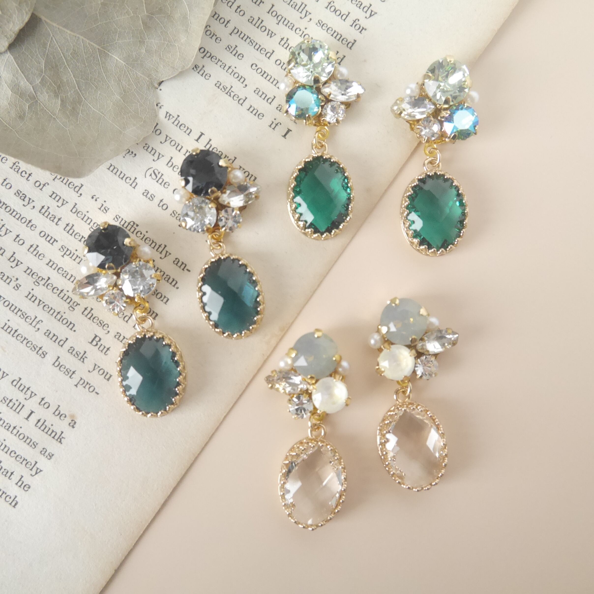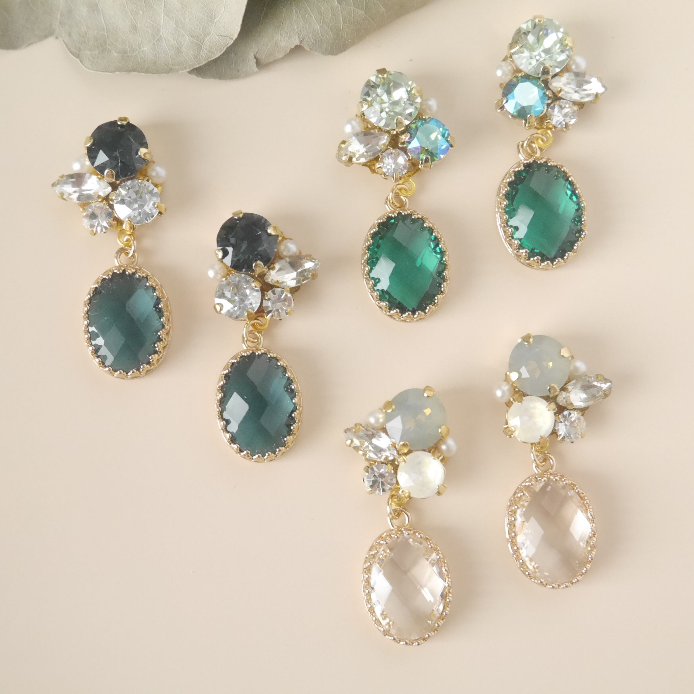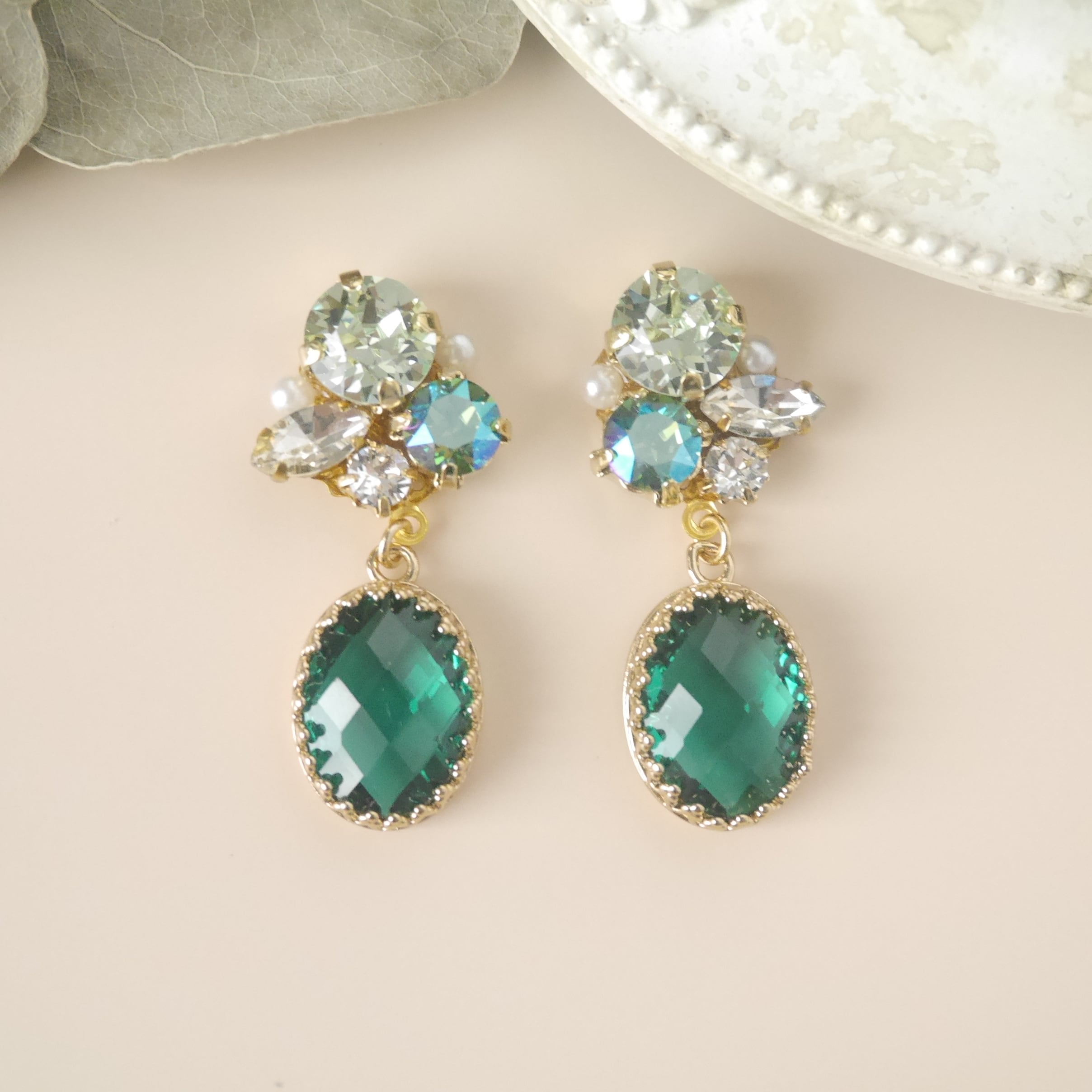 ガラスチャームオーバル スワロフスキー〈グリーン〉