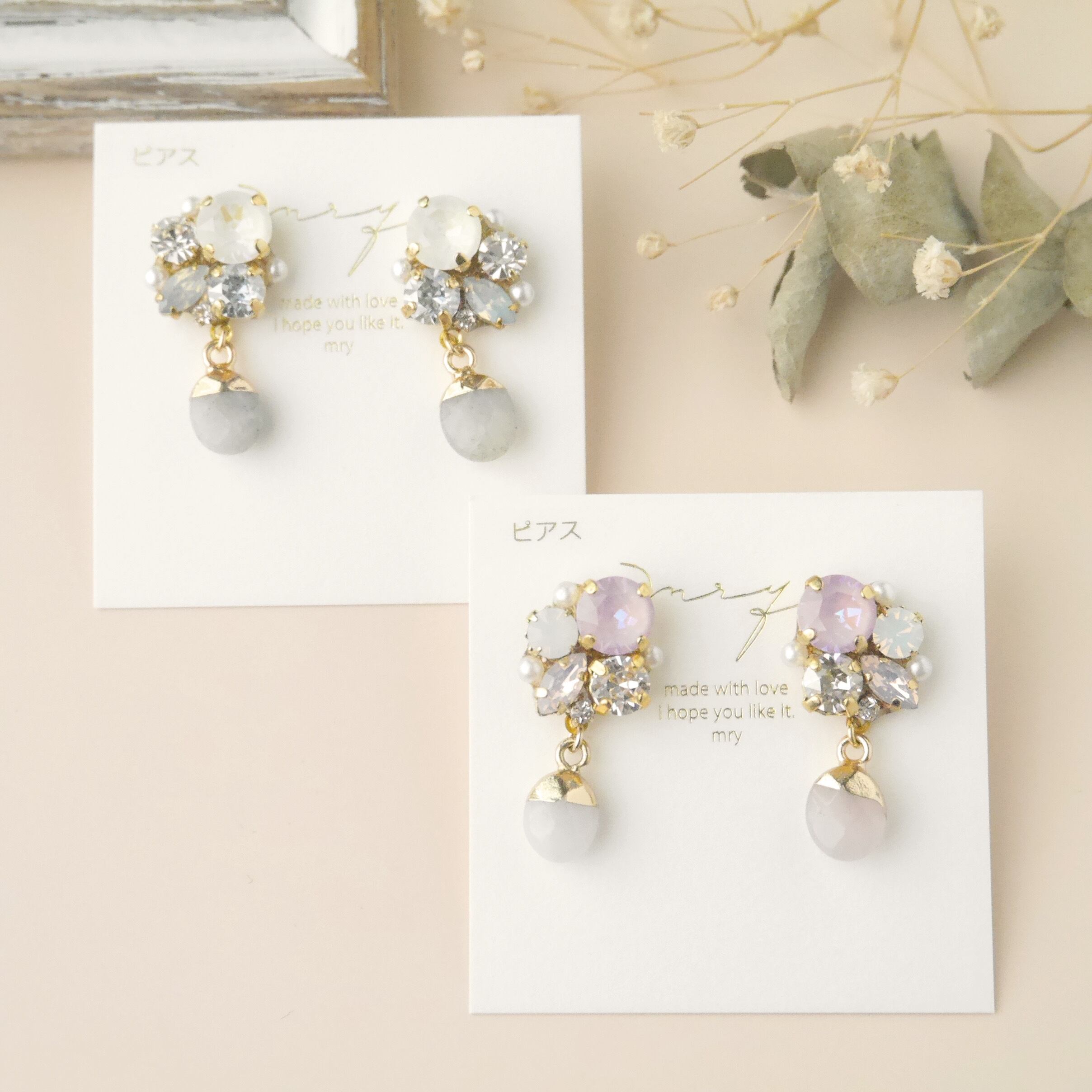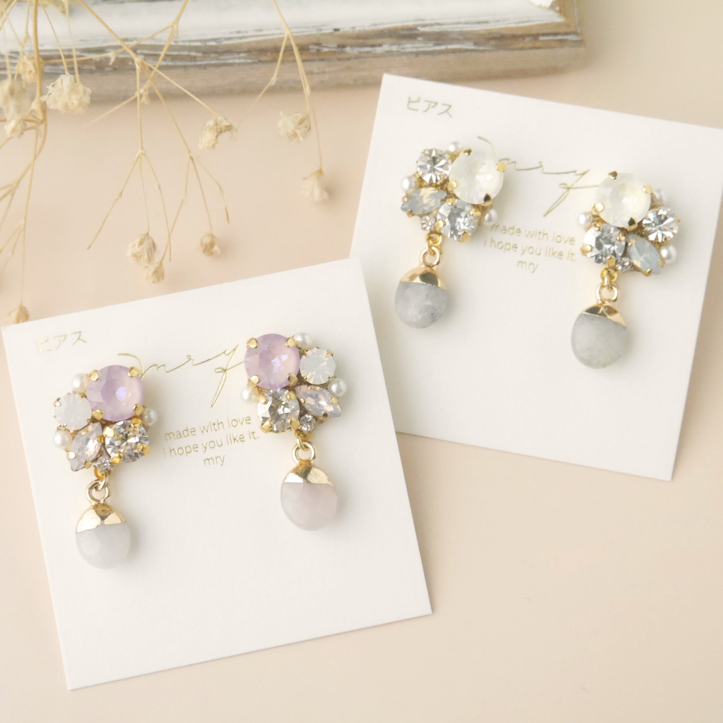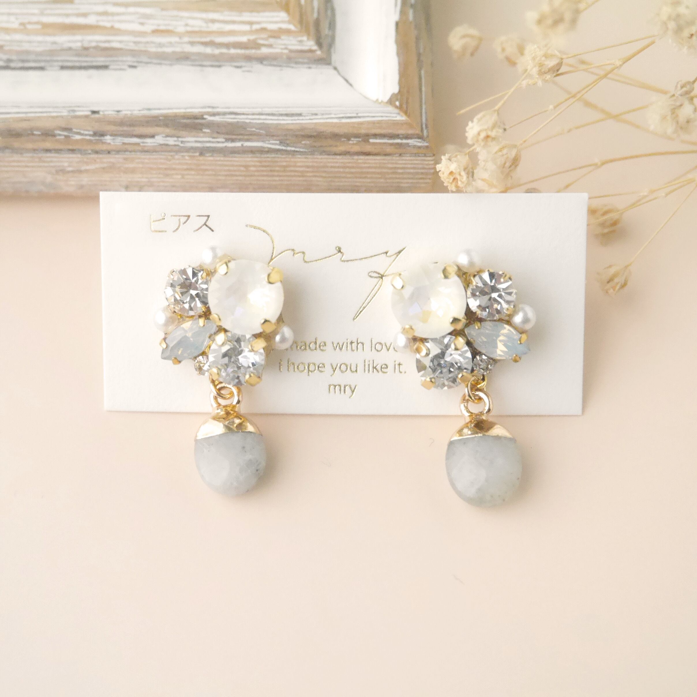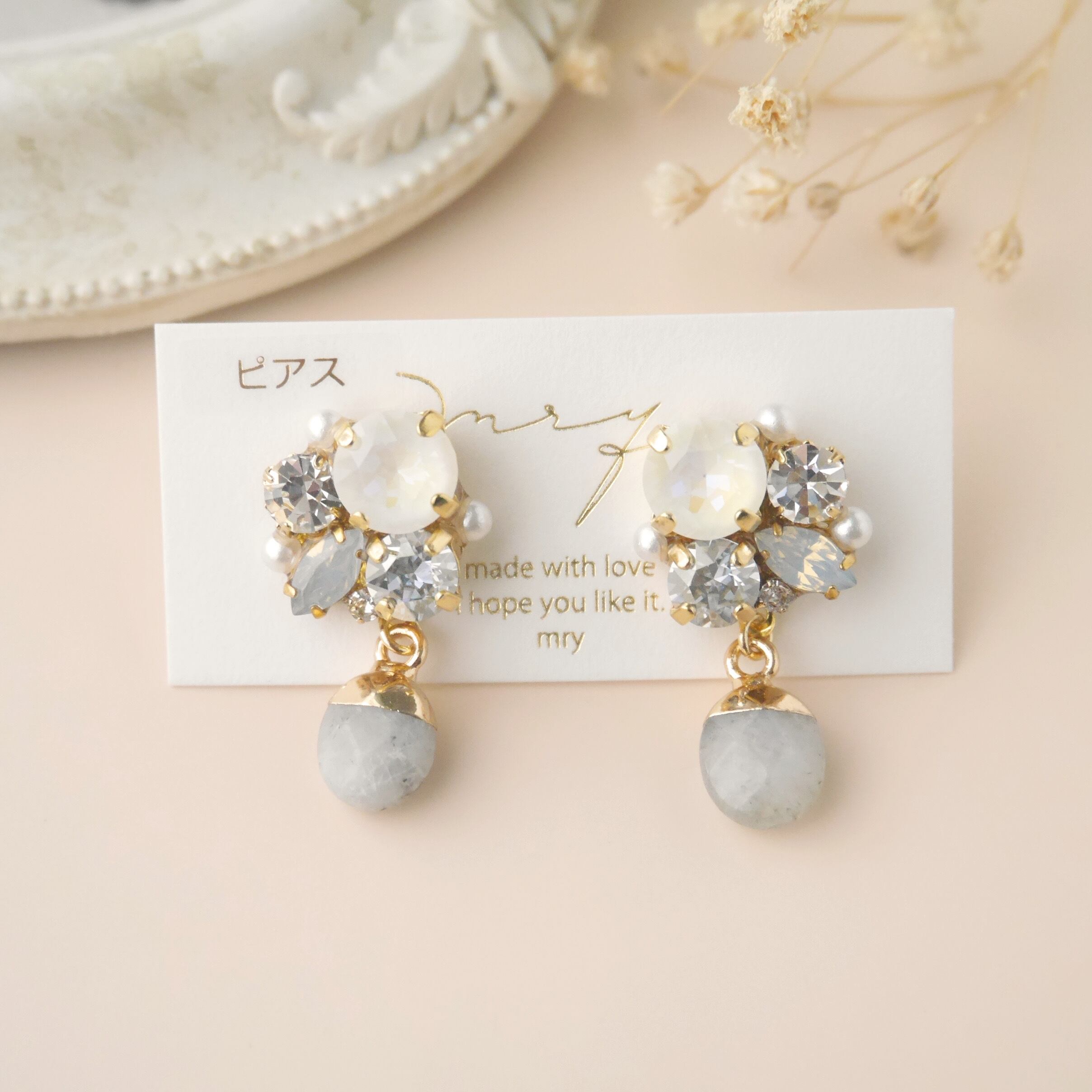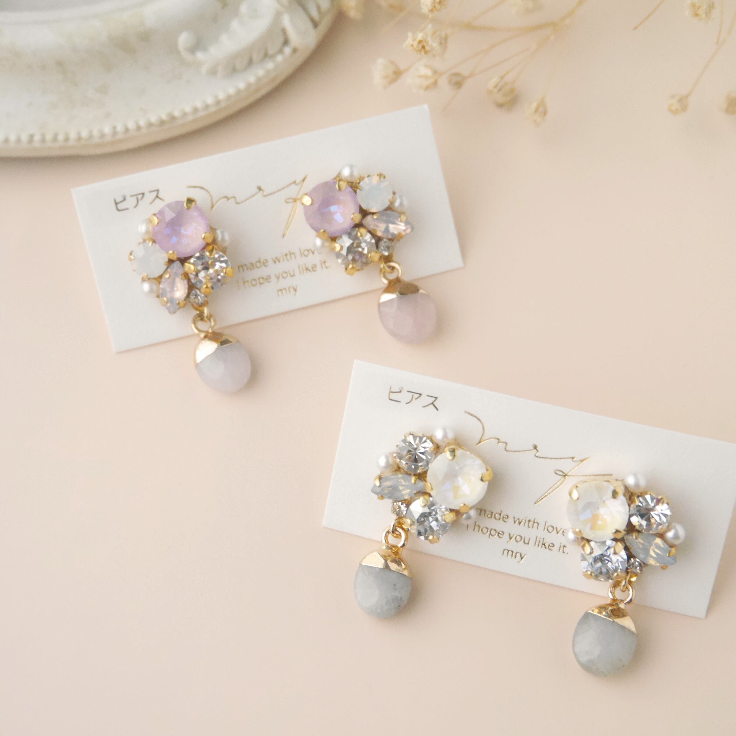 くすみカラー 天然石 × スワロフスキービジュー〈グレー〉