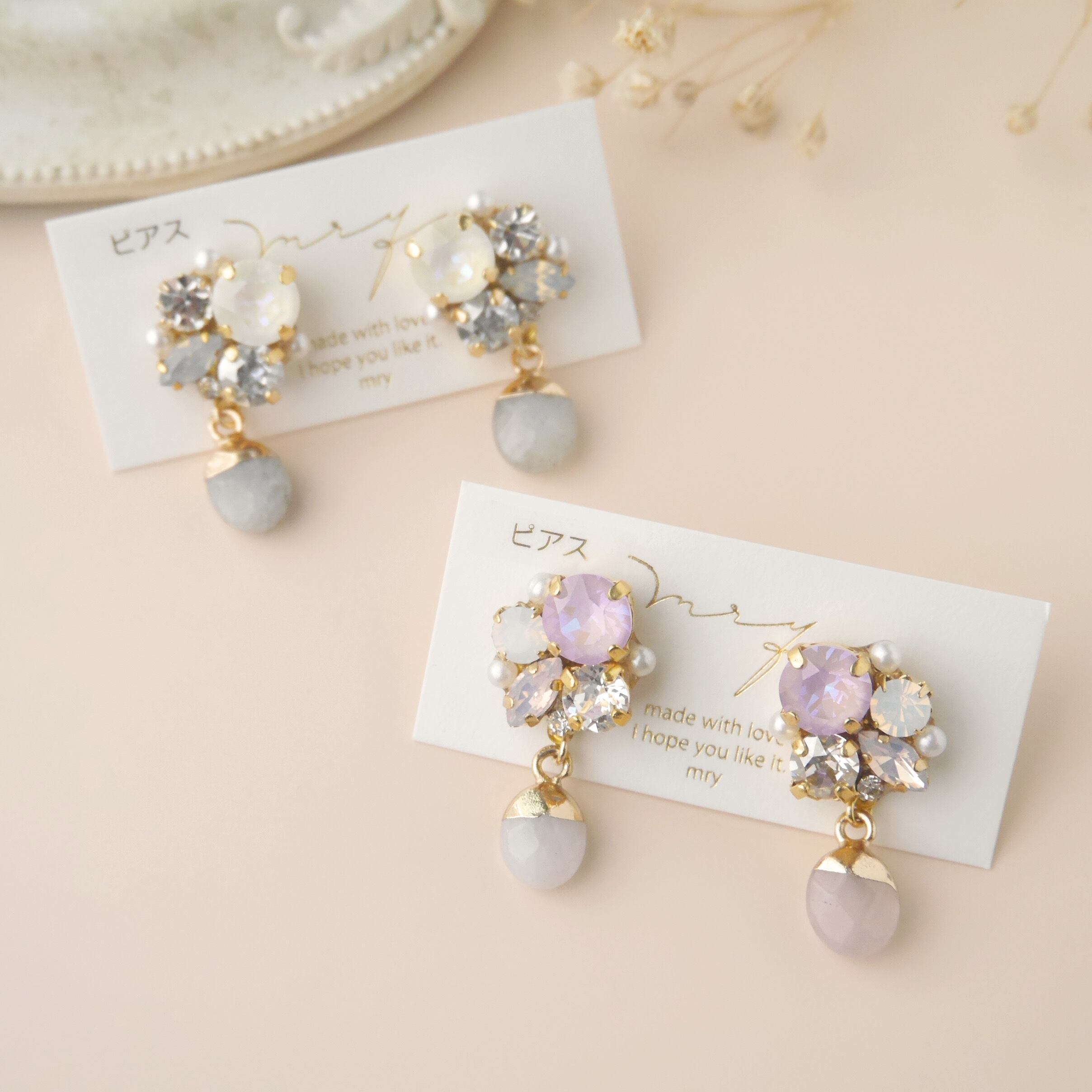 くすみカラー 天然石 × スワロフスキービジュー〈ピンク〉