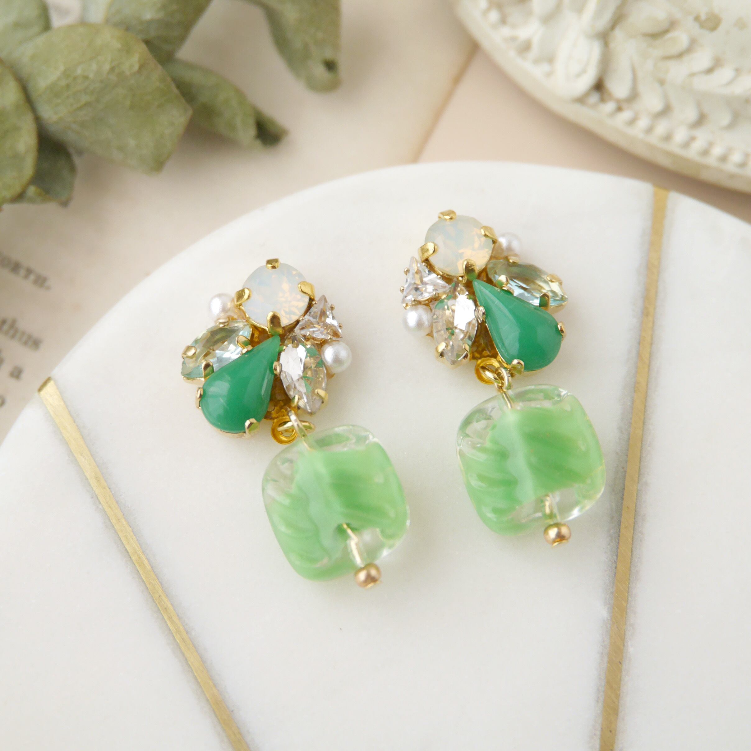 ヴィンテージスクエアビーズ×ビジュー〈グリーン〉