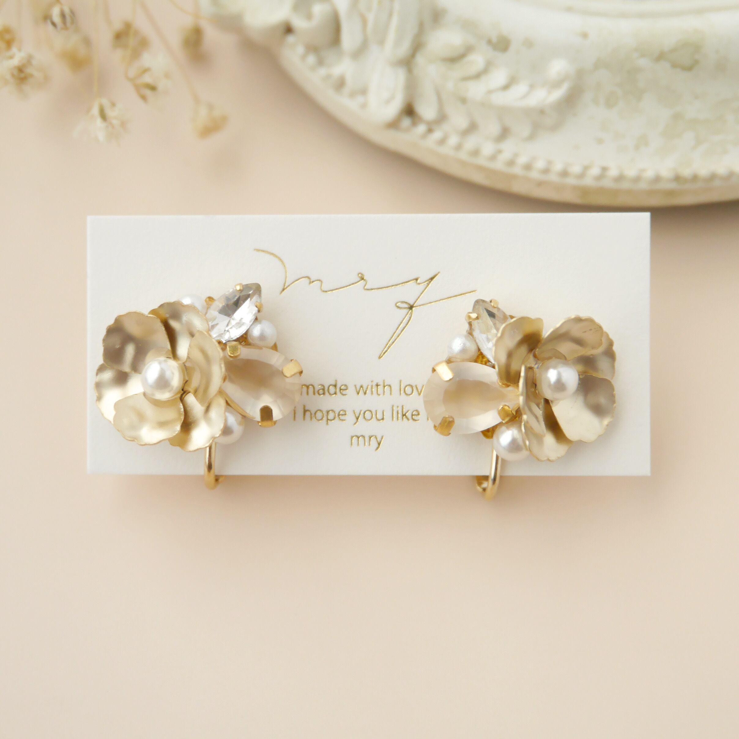 2way ゴールドフラワー コットンパール〈イヤリング〉