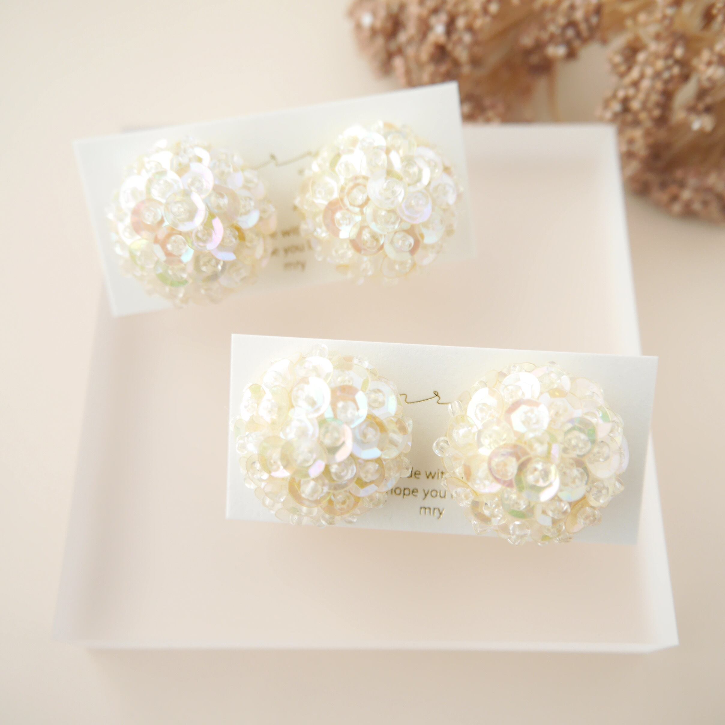オーロラカラーのスパンコールを編み込んでいます。