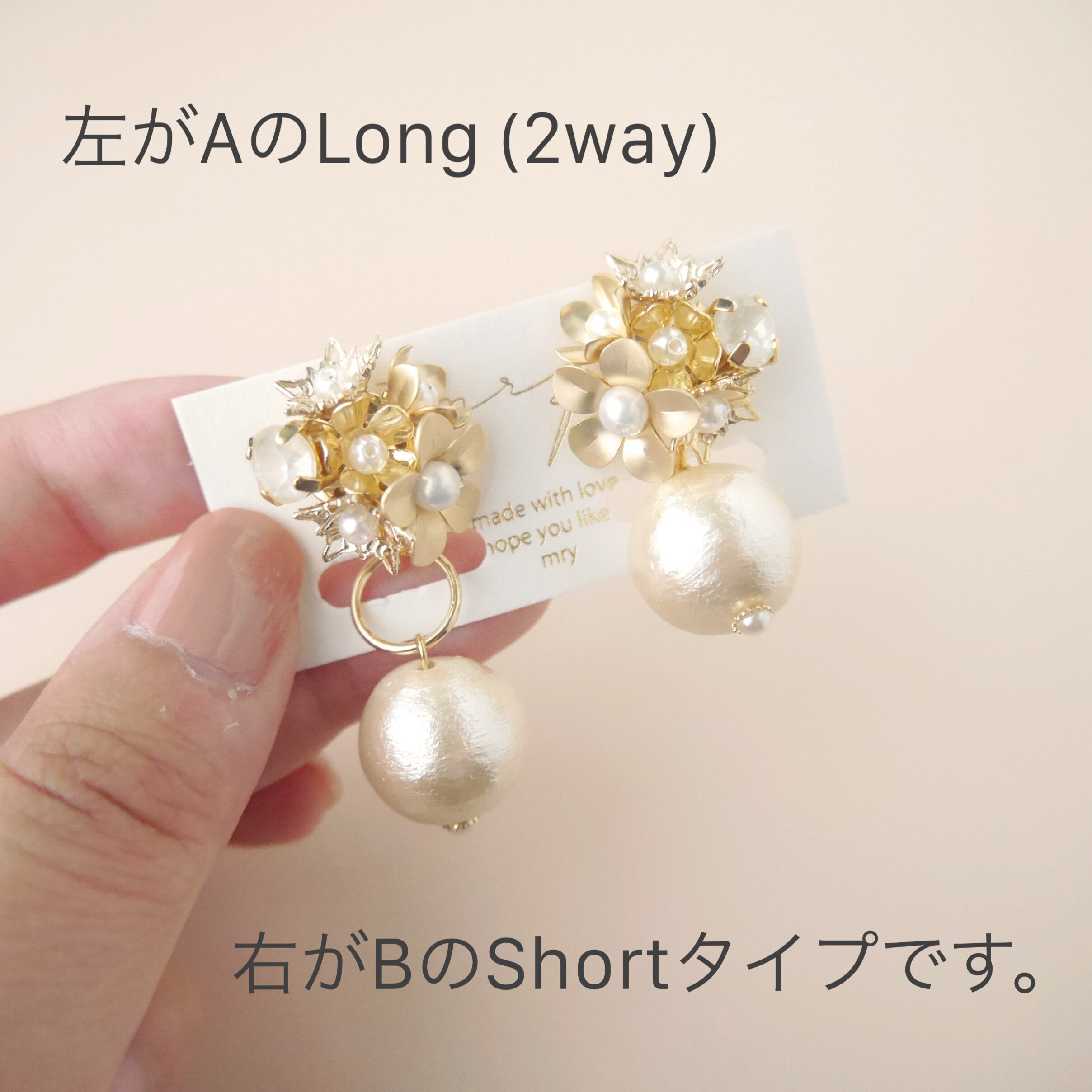 パールが取り外し出来るタイプは長めに、