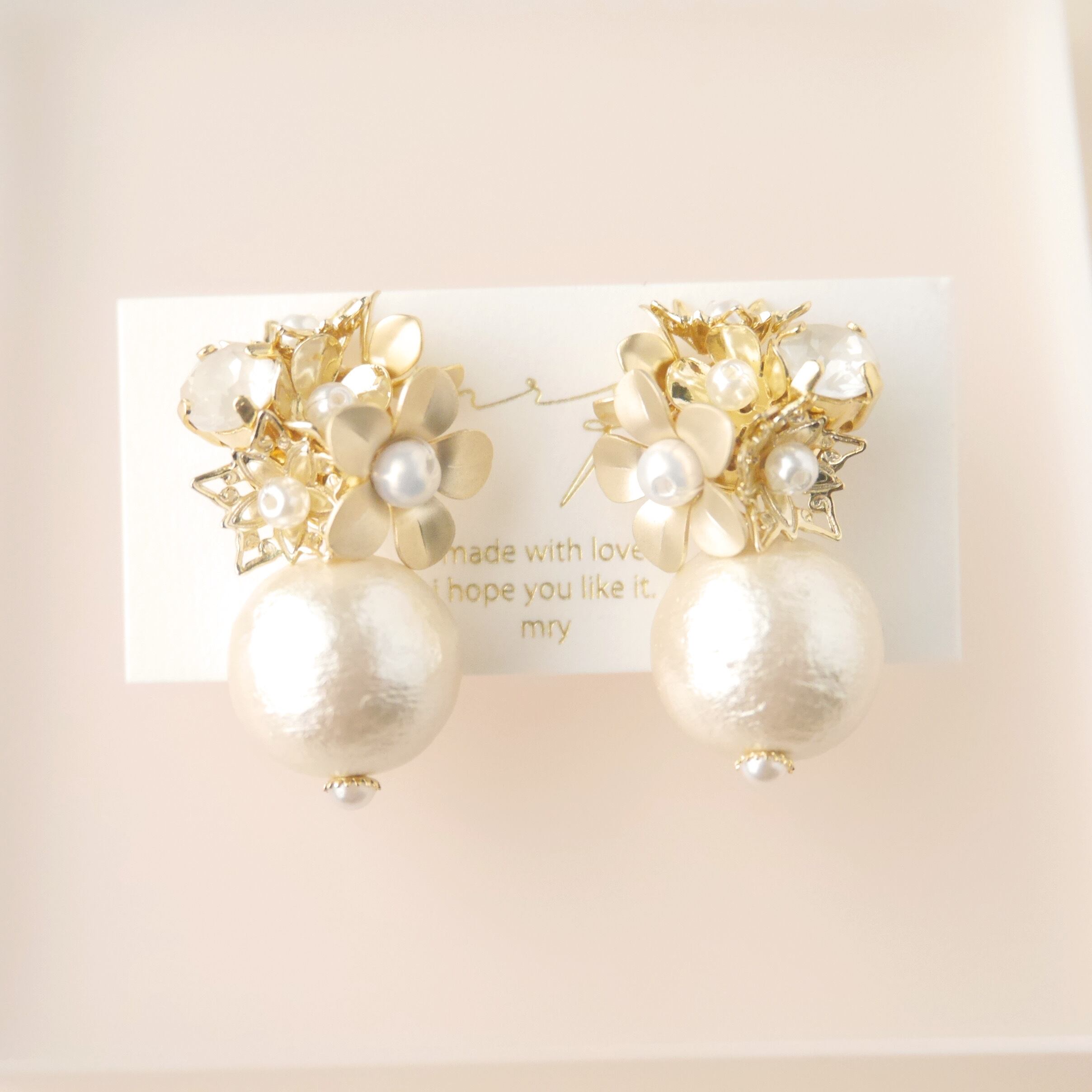 【イヤリング】ブーケットコットンパール